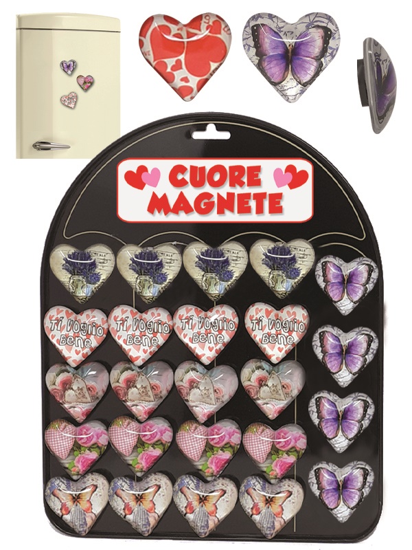 ESPOSITORE 24 CUORI MAGNETE IN VETRO ASSORTITI quantità