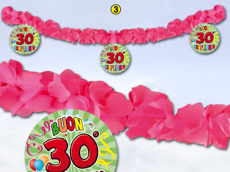 FESTONE ALOHA ETA’ 30 ANNI mt.2,10 CON STAMPA FRONTE/RETRO ø 6 cm