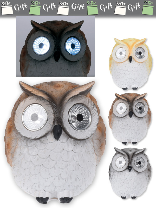 GUFO IN RESINA CON LUCE SOLARE LED. . . ORDINE MINIMO 3 PZ. ASSORTITI quantità