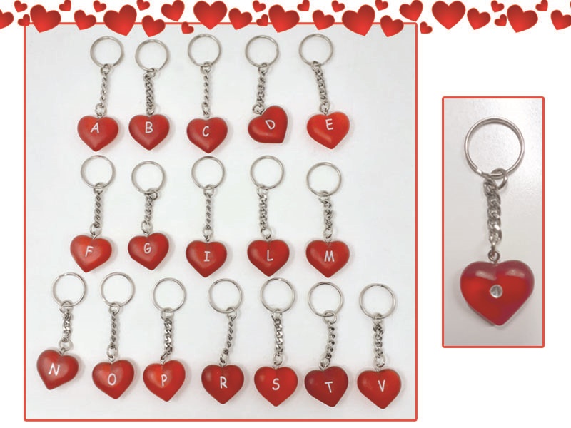 PORTACHIAVI CUORE C/INIZIALE ø 3 cm E STRASS SUL RETRO