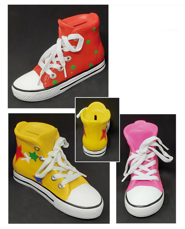 SALVADANAIO SCARPA IN CERAMICA CON VERE STRINGHE. . . ORDINE MINIMO 6 PZ. ASSORTITI quantità