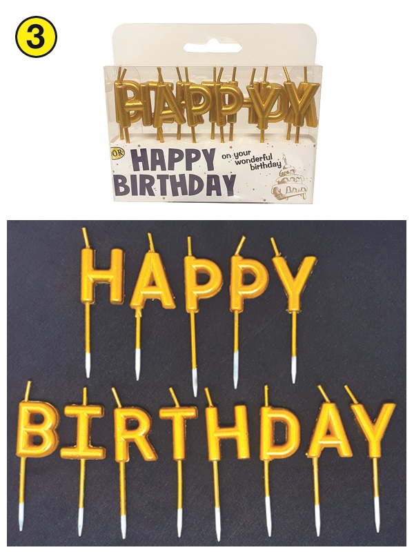 SET 13 CANDELINE SCRITTA ORO “HAPPY BIRTHDAY”. . . ORDINE MINIMO 18 SET