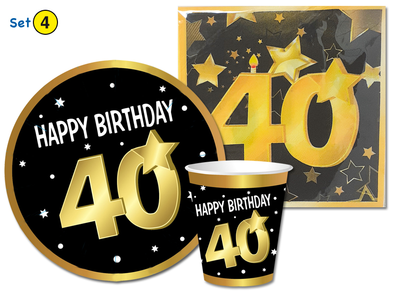 SET PARTY HAPPY BIRTHDAY ETA’ – 40 ANNI (COMPOSTO DA 6 PIATTI – 6 BICCHIERI – 20 TOVAGLIOLI)