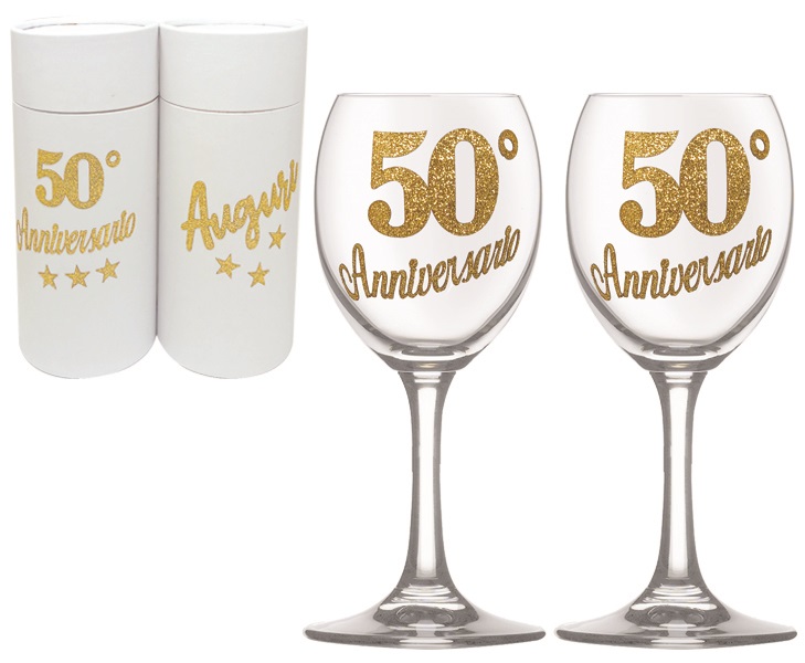 COPPIA CALICI 50° ANNIVERSARIO BRILLANTINATO SCATOLA BIANCA quantità