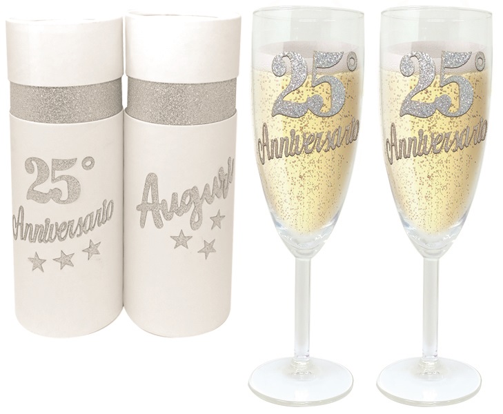 COPPIA FLUTE BRILLANTINATO 25° ANNIVERSARIO SCATOLA DELUXE