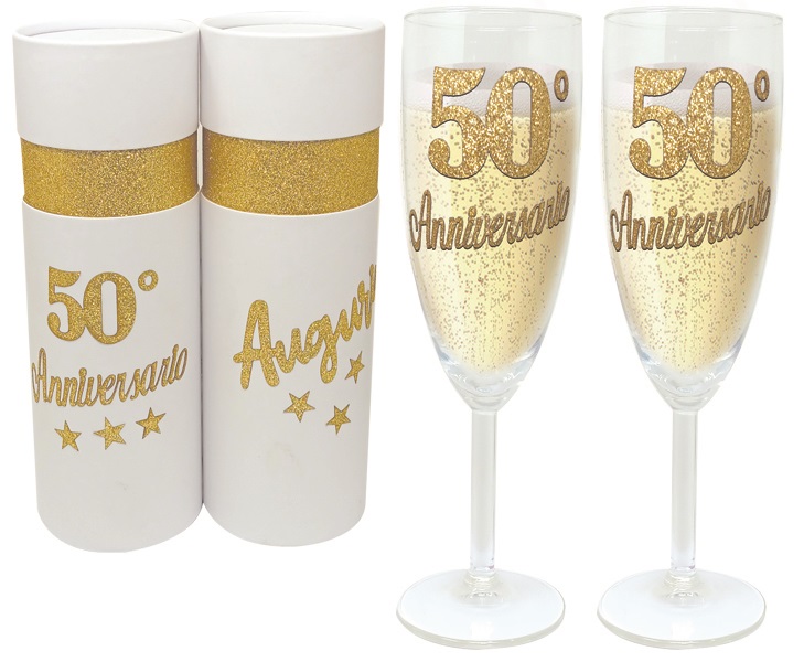 COPPIA FLUTE BRILLANTINATO 50° ANNIVERSARIO SCATOLA DELUXE quantità