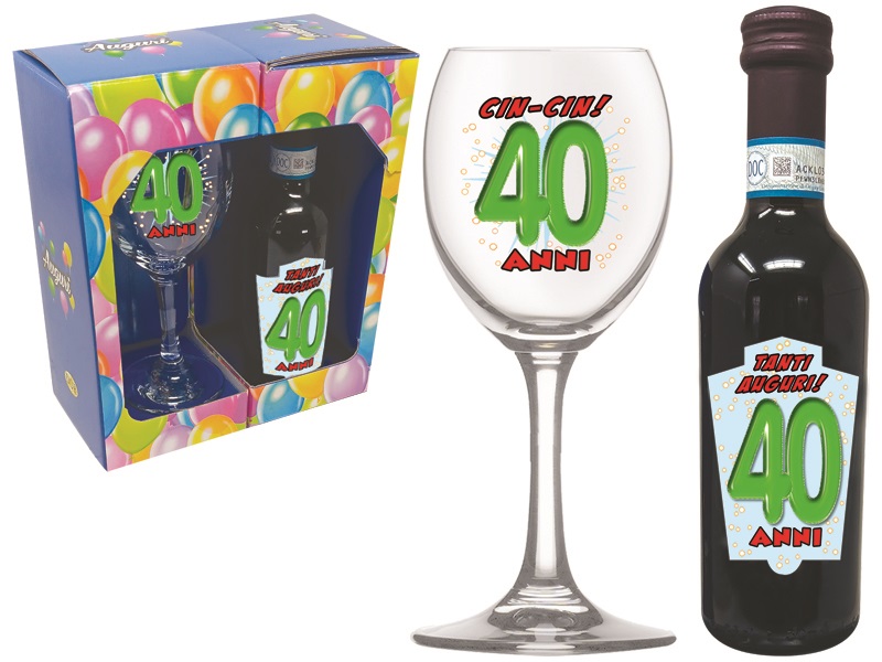 CALICE + VINO DOC 25 cl 40 ANNI SCATOLA PARTY quantità