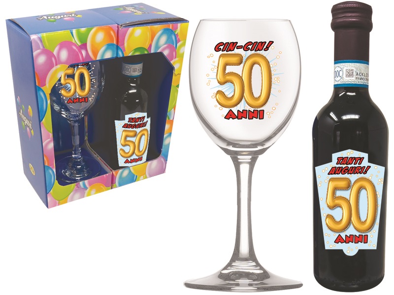 CALICE + VINO DOC 25 cl 50 ANNI SCATOLA PARTY quantità