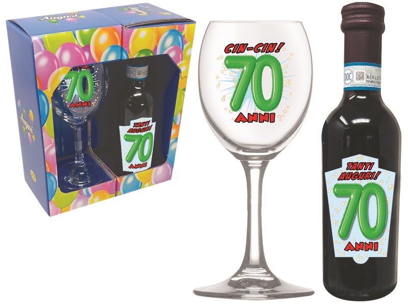 CALICE + VINO DOC 25 cl 70 ANNI SCATOLA PARTY