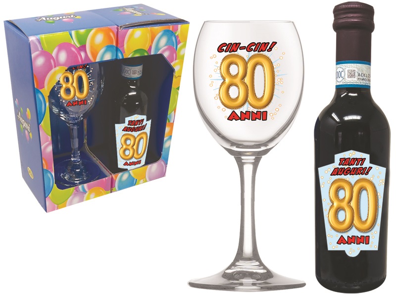 CALICE + VINO DOC 25 cl 80 ANNI SCATOLA PARTY