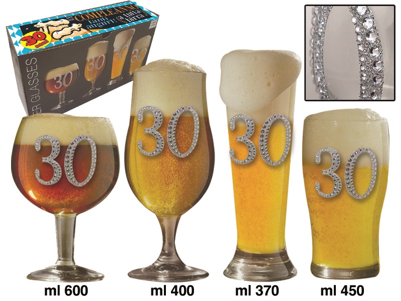 SET 4 BICCHIERI BIRRA 30 ANNI quantità