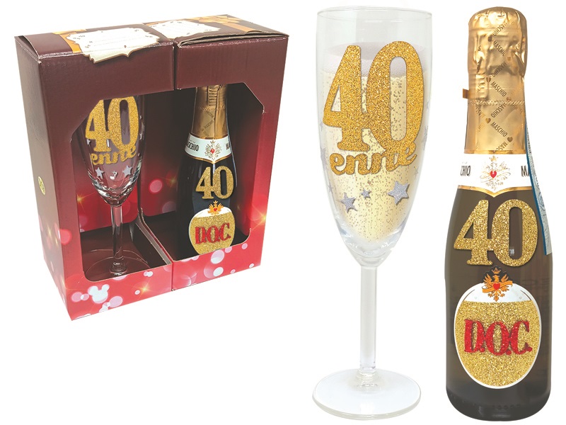 FLUTE+PROSECCO DOC 20 cl BRILLANTINATO 40 ANNI SCATOLA GIFT quantità