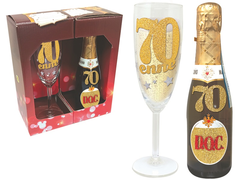 FLUTE+PROSECCO DOC 20 cl BRILLANTINATO 70 ANNI SCATOLA GIFT quantità