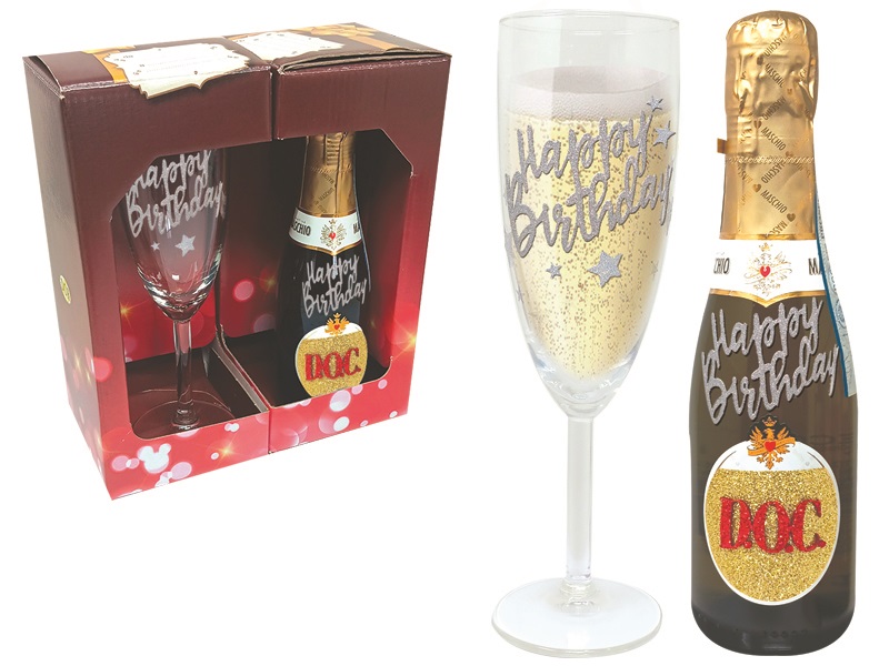 FLUTE + PROSECCO DOC 20 cl SCATOLA GIFT COMPLEANNO - 1202
