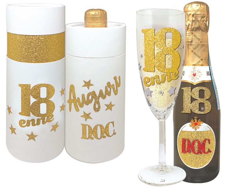 FLUTE+PROSECCO DOC 20 cl BRILLANTINATO 18 ANNI SCATOLA DELUXE quantità