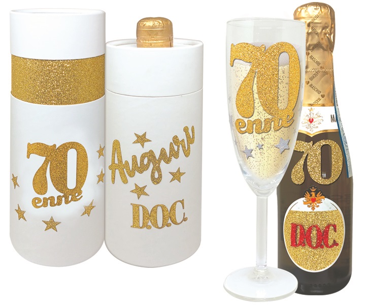 FLUTE+PROSECCO DOC 20 cl BRILLANTINATO 70 ANNI SCATOLA DELUXE quantità