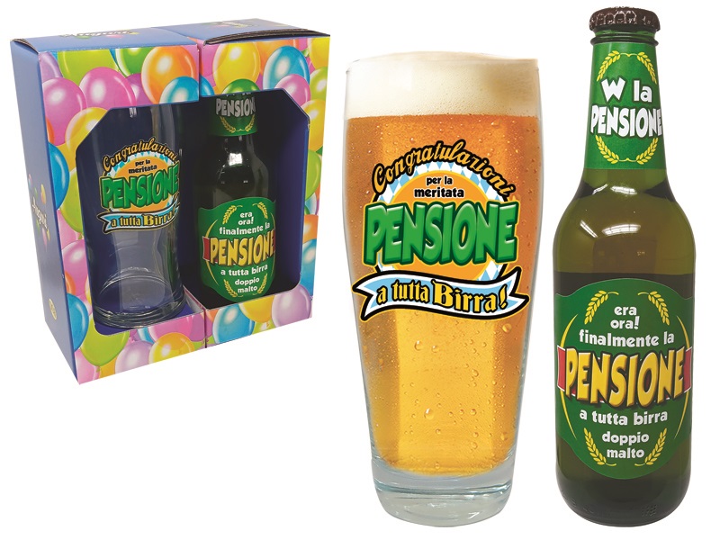 BICCHIERONE + BIRRA DOPPIO MALTO 33 cl PENSIONE SCATOLA PARTY quantità