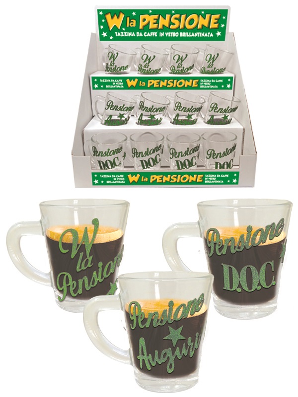 ESPOSITORE 12 TAZZINE CAFFE' IN VETRO BRILLANTANTINE PENSIONE quantità