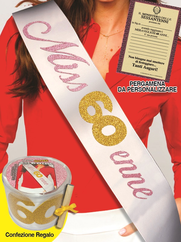 FASCIA GLITTER CON PERGAMENA MISS 60ENNE IN CONFEZIONE REGALO quantità
