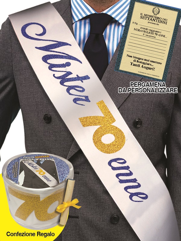 FASCIA GLITTER CON PERGAMENA MISTER 70ENNE IN CONFEZIONE REGALO quantità