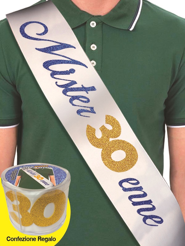 FASCIA CON SCRITTA GLITTER MISTER 30ENNE IN CONFEZIONE REGALO quantità