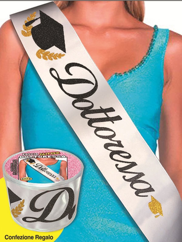 FASCIA CON SCRITTA GLITTER DOTTORESSA IN CONFEZIONE REGALO quantità