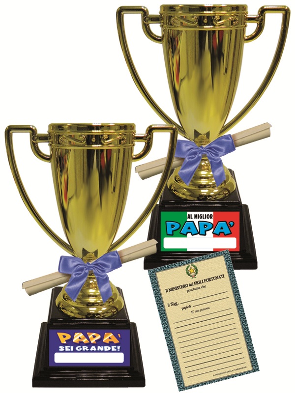 COPPA PAPA’ H.20 cm CON PERGAMENA DA PERSONALIZZARE. . . ORDINE MINIMO 4 PZ. ASSORTITI