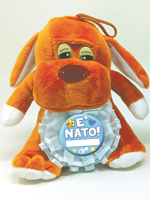 CAGNOLINO 15 cm CON COCCARDINA AZZURRO IN PIZZO E TULLE PERSONALIZZABILE ø 8 cm
