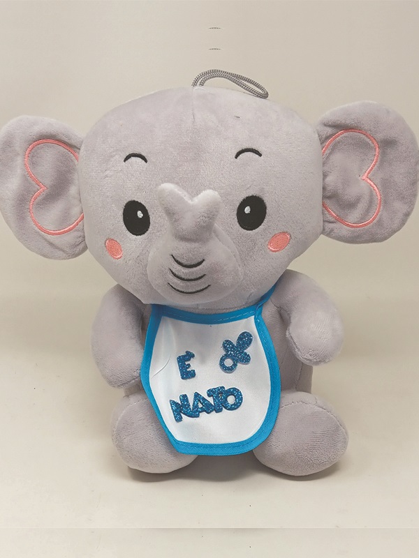ELEFANTINO cm 25 CON BAVAGLINO E GLITTER AZZURRO