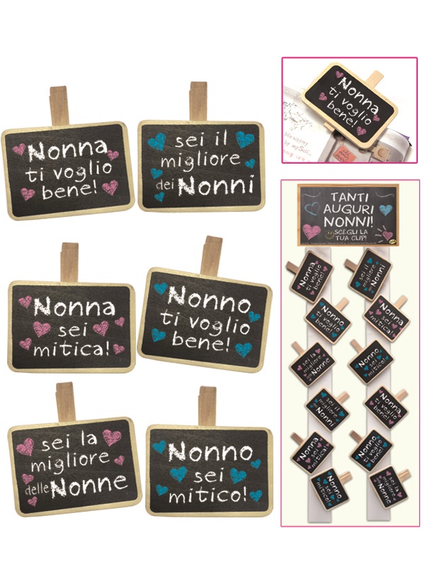 CLIP NONNO/A IN LEGNO CON MESSAGGIO ASSORTITE. . . ORDINE MINIMO 18 PZ. ASSORTITI CON CARTELLA IN OMAGGIO quantità