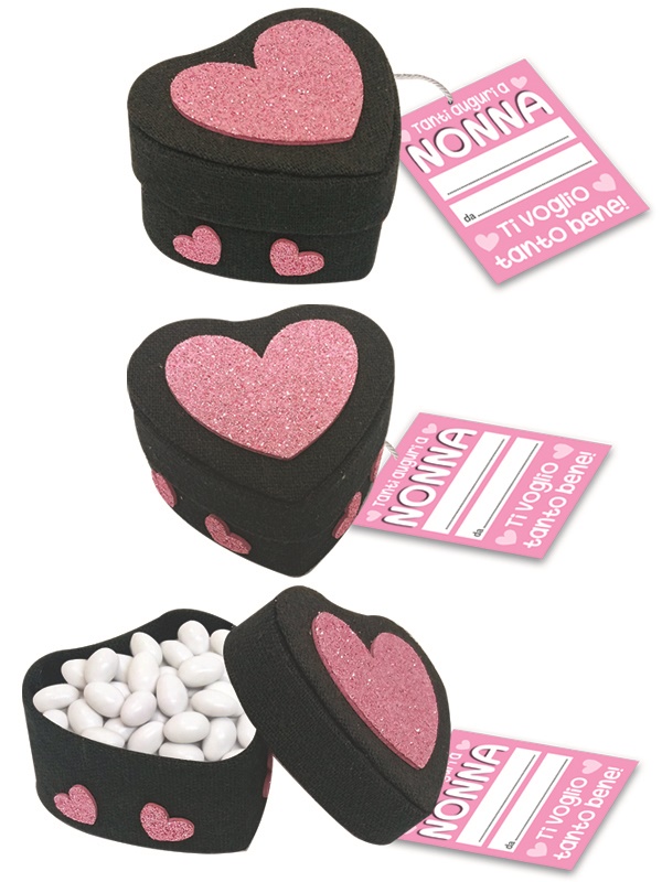 SCATOLINA PORTAREGALO E PORTAPASTIGLIE NONNI IN TESSUTO CON APPLICAZIONI GLITTER E BIGLIETTO. . . ORDINE MINIMO 4 PZ. quantità