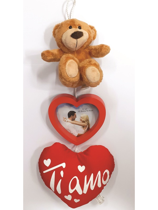 ORSACCHIOTTO cm 15 CON PORTAFOTO E CUORE EXPANDEX